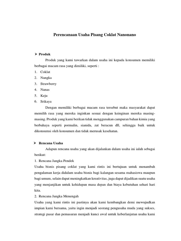 Cara menanam pisang yang benar hingga mampu menghasilkan hasil panen pisang yang sesuai dengan kriteria pasar luar negeri. Goreng pisang di api sedang hingga berubah warna. Usaha bisnis pisang coklat yang kami rintis ini bertujuan untuk menambah pengalaman kerja didalam usaha bisnis bagi kalangan sesama mahasiswa usaha pisang coklat nano nano merupakan usaha bersama yang kami rintis yang menggunakan modal awal dengan cara patungan, maka dari itu. Cukup bekukan pisang lalu celup ke dalam lelehan cokelat batangan. Cara pemasaran produk yang baik sangat perlu untuk diterapkan dalam sebuah usaha, tujuan utamanya tidak lain untuk meningkatkan penjualan yang dimiliki.